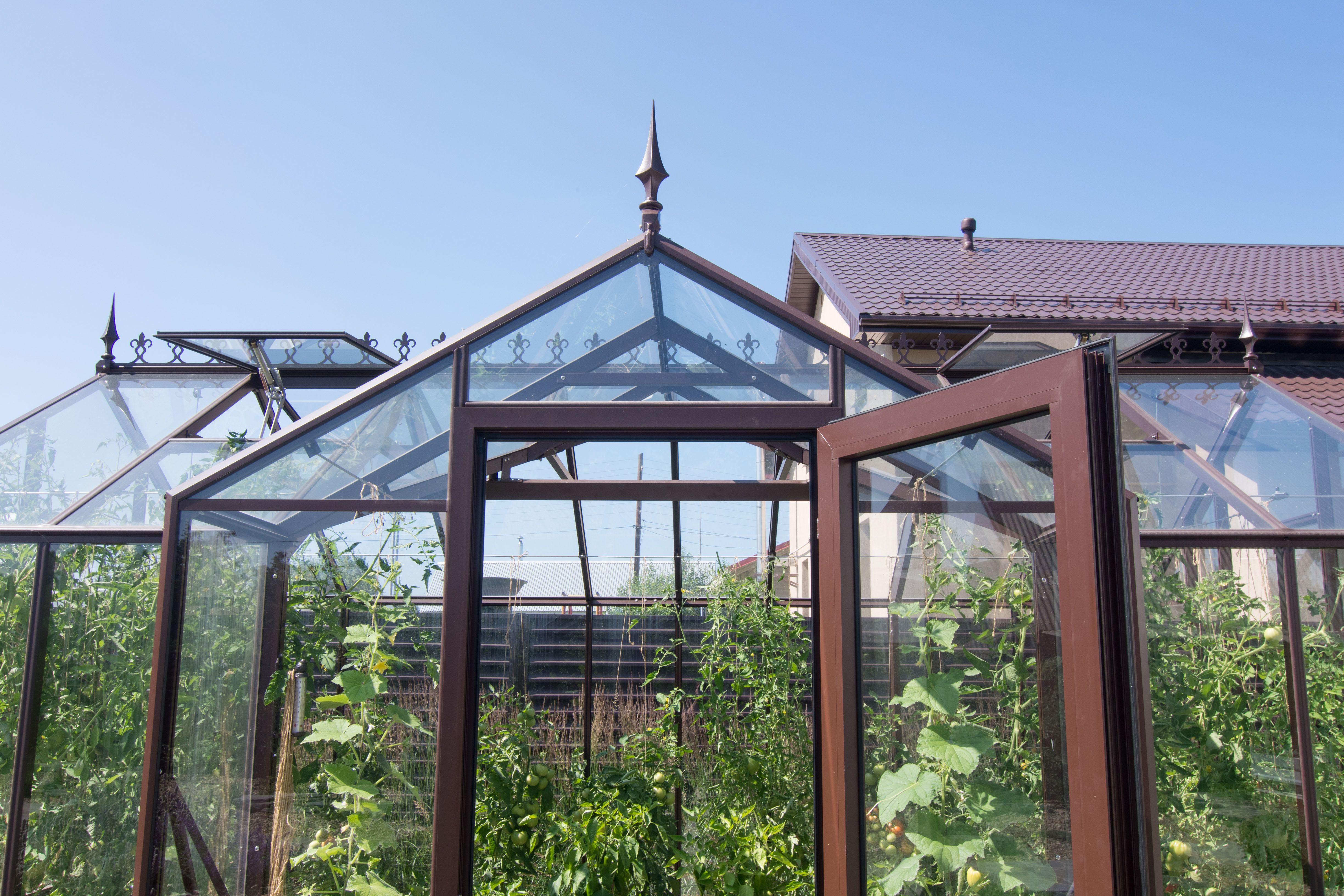 Такие габариты создают просторное внутреннее пространство, позволяют разместить несколько полноценных грядок и без ограничений выращивать высокорослые культуры;