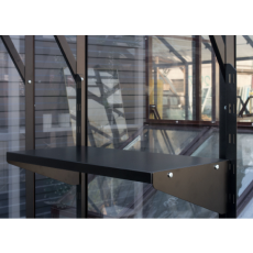 Создаёт удобное рабочее пространство как для хранения инвентаря, так и для рассады или цветов, сэкономив пространство внутри теплицы.
